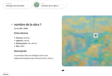 Sube tus obras, ponles precio y organízalas por colecciones en tu nueva web tu-nombre.foliums.io.