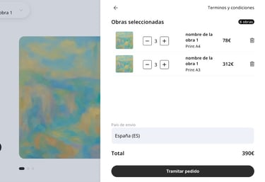 Desde lienzos originales hasta colecciones de prints. Configura tus tarifas de envío una sola vez y recibe los pedidos de tus compradores.