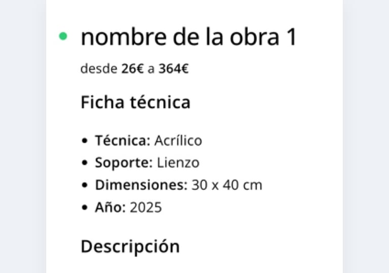Crea una página profesional en minutos, sube tus obras y empieza a vender directamente a tus clientes.