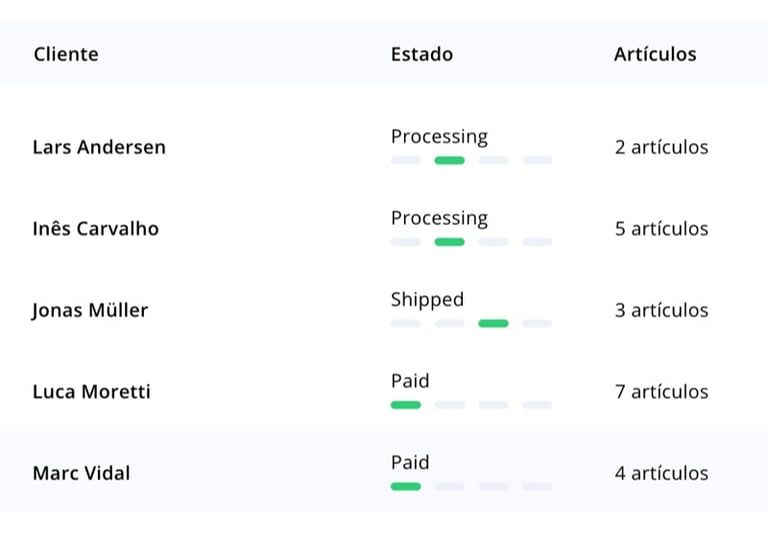 Panel para gestionar todos tus pedidos de forma fácil y eficaz.