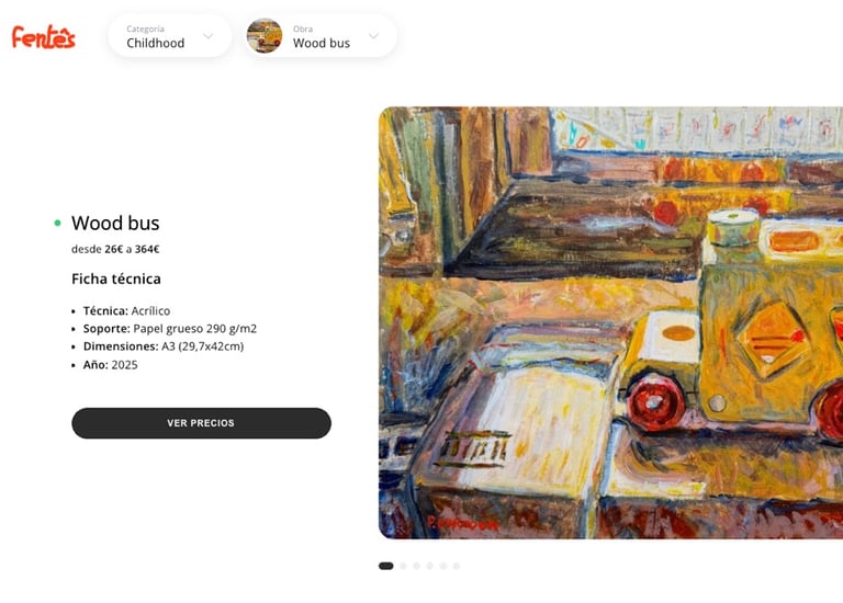 En otras plataformas, vendes una obra por 100€ y recibes 80€ después de comisiones ocultas y tasas bancarias. En Foliums, el arte es tuyo y el dinero también. Las pequeñas tasas de gestión de pago seguro las asume el comprador en el carrito.